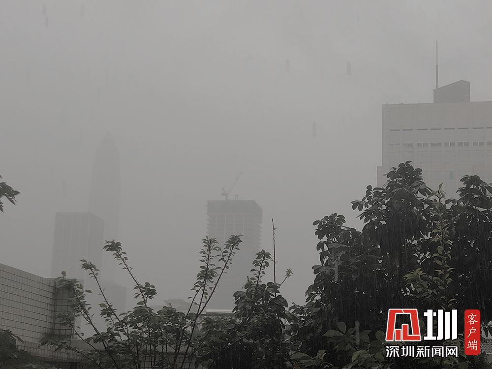 25日上午11時(shí)許,伴隨著雷聲,深圳市福田區(qū)開(kāi)始下雨。