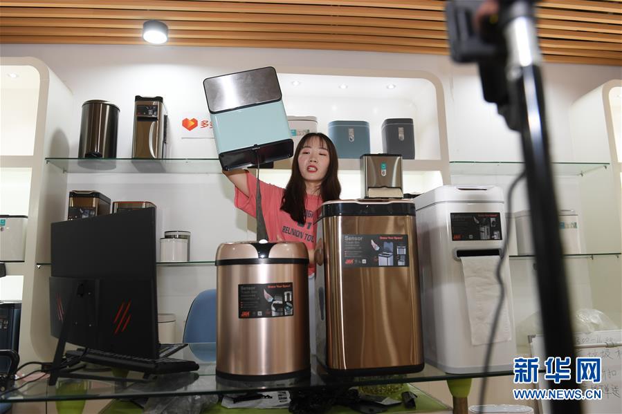 5月25日,在浙江省臺州市黃巖區(qū),一家塑料制品生產企業(yè)的工作人員在直播銷售智能垃圾桶。近年來,浙江省臺州市黃巖區(qū)的家居塑料制品生產企業(yè)加強與國內電商平臺的對接,大力開拓線上市場,根據(jù)線上市場反饋,提升產品研發(fā)針對性,創(chuàng)新產品類型,為企業(yè)轉型升級注入活力。新華社記者翁忻旸攝