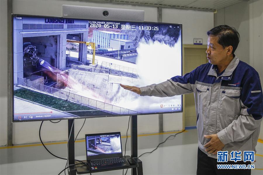 5月26日,藍(lán)箭航天技術(shù)有限公司總經(jīng)理杜方平介紹發(fā)動(dòng)機(jī)點(diǎn)火試驗(yàn)。新華社記者張玉薇攝