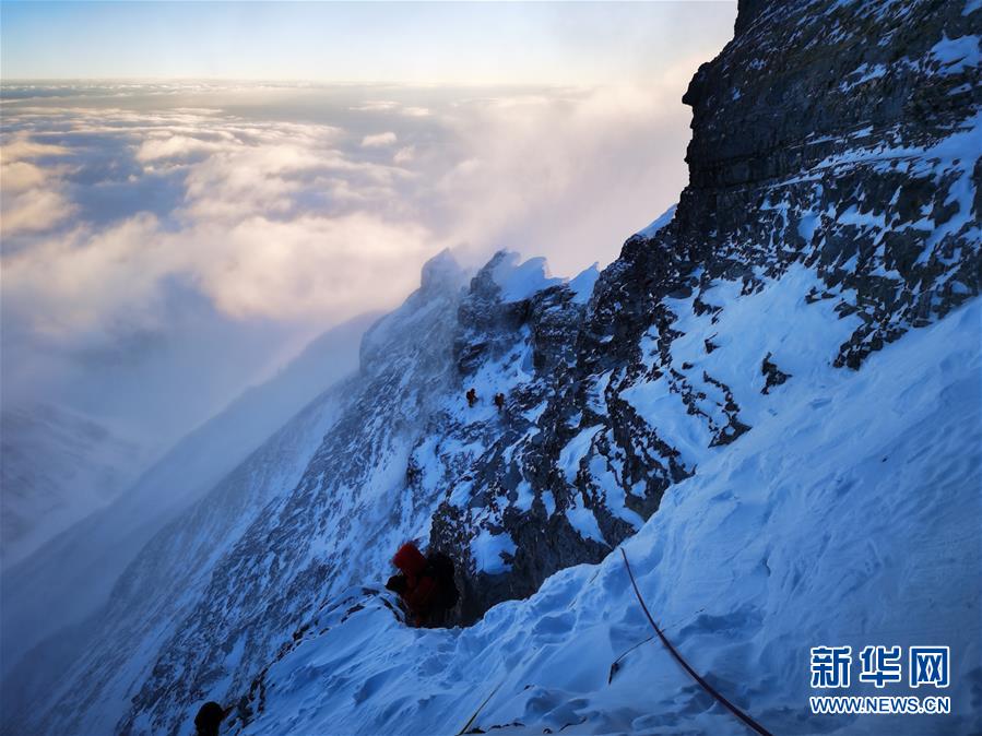 5月27日,2020珠峰高程測(cè)量登山隊(duì)正在向珠峰峰頂挺進(jìn)。新華社特約記者扎西次仁攝