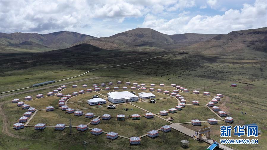 這是5月25日拍攝的甘南藏族自治州碌曲縣尕海鎮(zhèn)尕秀村帳篷城景區(qū)(無人機(jī)照片)。新華社記者陳斌攝