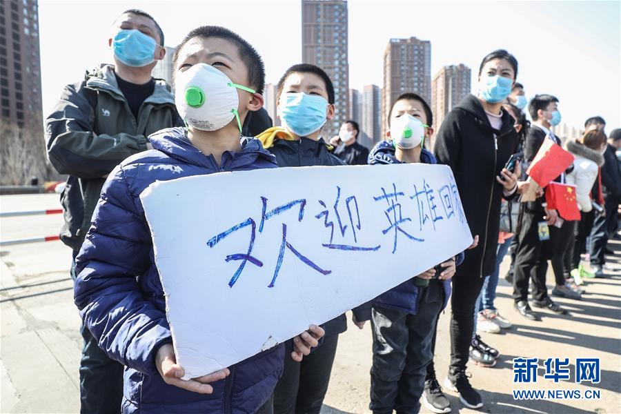 遼寧沈陽一高速公路出口,男孩們列隊(duì)歡迎遼寧對口支援襄陽醫(yī)療隊(duì)歸來(3月21日攝)。新華社記者潘昱龍攝