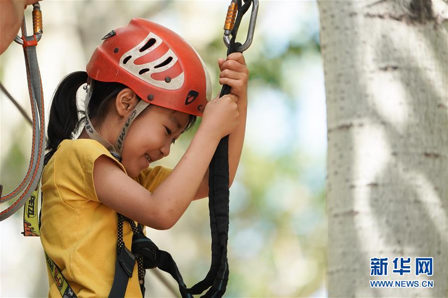 5月31日,小朋友在北京朝陽(yáng)公園體驗(yàn)戶(hù)外運(yùn)動(dòng)。
