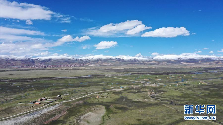 這是5月29日拍攝的四川省甘孜藏族自治州理塘縣奔戈鄉(xiāng)卡灰村一景(無人機照片)。四川省甘孜藏族自治州理塘縣地處青藏高原東部,縣城海拔約4000米,有“天空之城”的美譽。時值初夏,理塘的天空碧藍如洗,巍峨的雪山環(huán)繞四周,牦牛星星點點散落于曠野之上,構成一幅高原特有的壯美圖景。新華社記者李夢馨攝