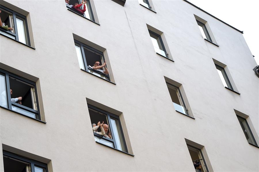 5月30日,在奧地利維也納“時代精神”酒店內(nèi),人們在房間窗口欣賞歌劇演出。當(dāng)日,奧地利首都維也納的一家名為“時代精神”的酒店為迎接“解封”后恢復(fù)營業(yè),在其庭院內(nèi)舉辦“窗口音樂會”。按照奧政府此前公布的“解封”時間表,從29日起,賓館酒店以及健身房、游泳池和游樂場等休閑娛樂場所有條件恢復(fù)運(yùn)營。新華社記者郭晨攝