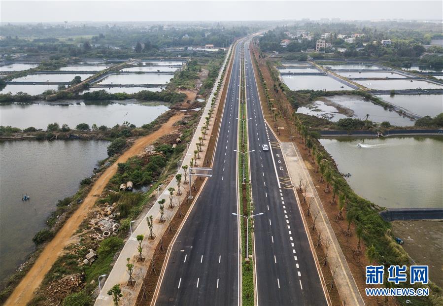 這是4月1日拍攝的位于??诮瓥|新區(qū)的東寨港大道(無(wú)人機(jī)照片)。新華社記者蒲曉旭攝