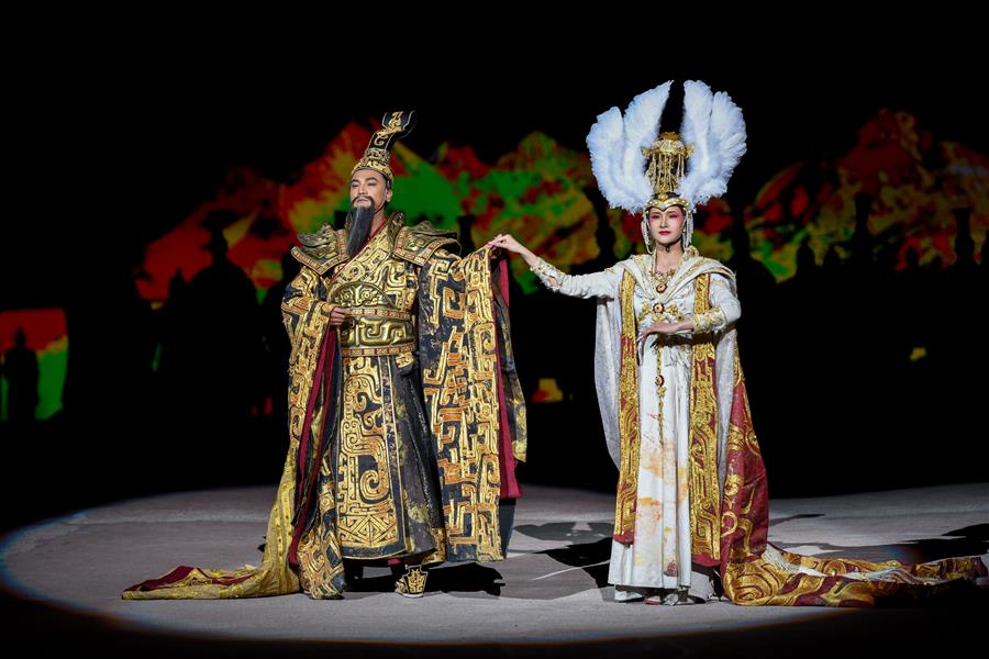 5月28日,演員在大型實景神話音樂劇《昆侖之約》中表演。5月28日,新疆文化旅游新名片——大型實景神話音樂劇《昆侖之約》在烏魯木齊南山景區(qū)上演。該劇融自然山水之美、藝術文化之光、現(xiàn)代科技之新于一體,為市民獻上一場視聽盛宴。新華社記者丁磊攝。