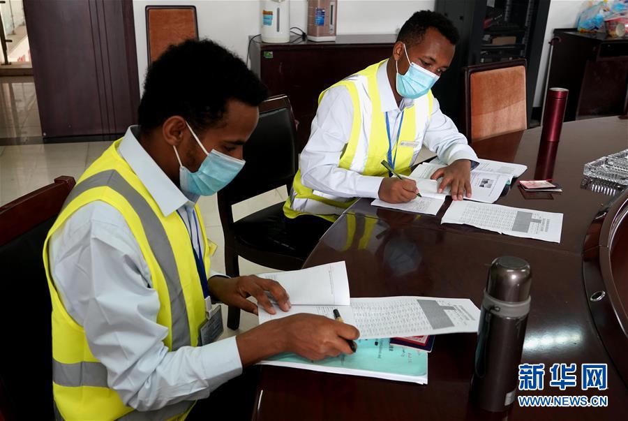 6月5日,在鄭州機(jī)務(wù)段,伊迪內(nèi)卡邱(右)和特瑞薩(左)在填寫實(shí)習(xí)手冊。 新華社記者 李安 攝