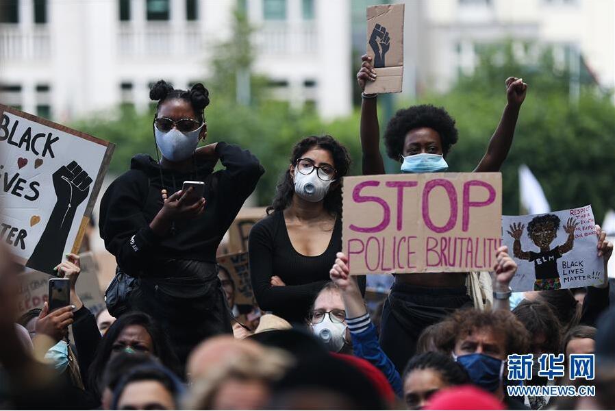 6月7日,民眾在比利時(shí)布魯塞爾市中心的司法宮附近參加示威活動(dòng)。比利時(shí)民眾當(dāng)日在布魯塞爾市中心的司法宮附近舉行示威活動(dòng),抗議美國明尼阿波利斯市警察暴力執(zhí)法致非裔男子喬治·弗洛伊德死亡。新華社記者鄭煥松攝