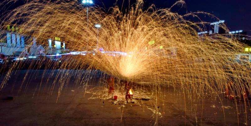 古老打鐵花技藝首現(xiàn)長春 1700度鐵水空中開花 現(xiàn)場市民大呼過癮