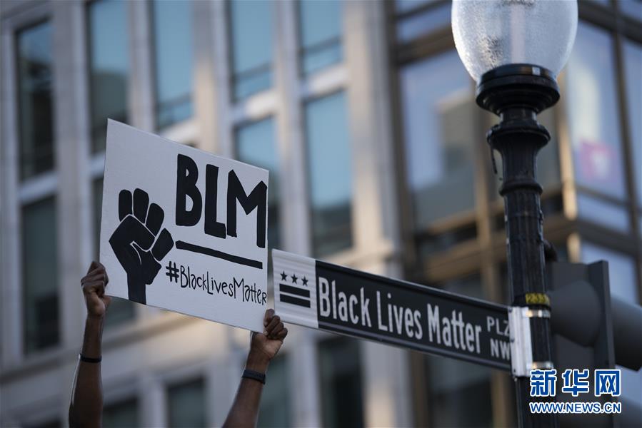 6月8日,一名男子在美國華盛頓白宮附近手舉“黑人的命也是命”的抗議標(biāo)語。新華社記者劉杰攝