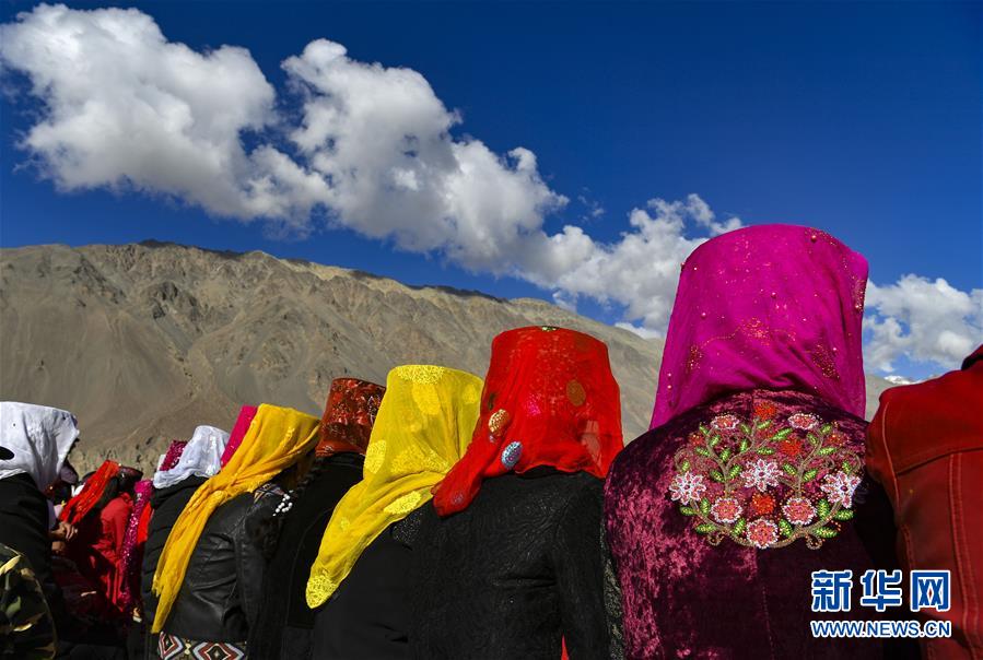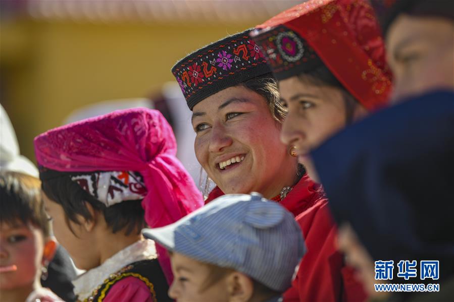 村民在熱斯喀木村觀看新疆塔什庫爾干塔吉克自治縣文工團的演出(6月6日攝)。新華社記者胡虎虎攝