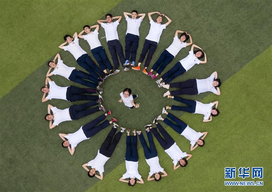 6月9日,河北省衡水市第二中學(xué)的高三學(xué)生在操場上參加減壓趣味游戲(無人機(jī)照片)。2020年高考臨近,河北省衡水市第二中學(xué)組織開展多種形式的集體“減壓”活動,幫助高三學(xué)生在緊張備考之余釋放身心壓力,以輕松、樂觀、自信的心態(tài)迎接高考。新華社記者朱旭東攝