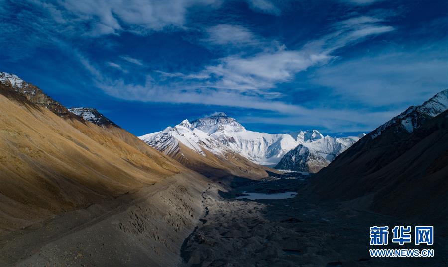 這是珠穆朗瑪峰(無人機(jī)照片,5月25日攝)。從空中俯瞰珠穆朗瑪峰北坡,生機(jī)勃勃的高原濕地、蜿蜒曲折的盤山公路、壯麗秀美的絨布冰川,還有安靜的村莊和熱鬧的登山營(yíng)地,共同構(gòu)成一幅壯美畫卷。新華社記者普布扎西攝