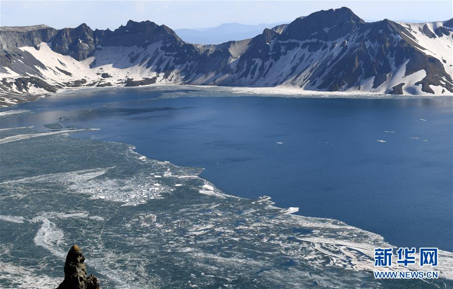 長白山天池迎來“開冰季”