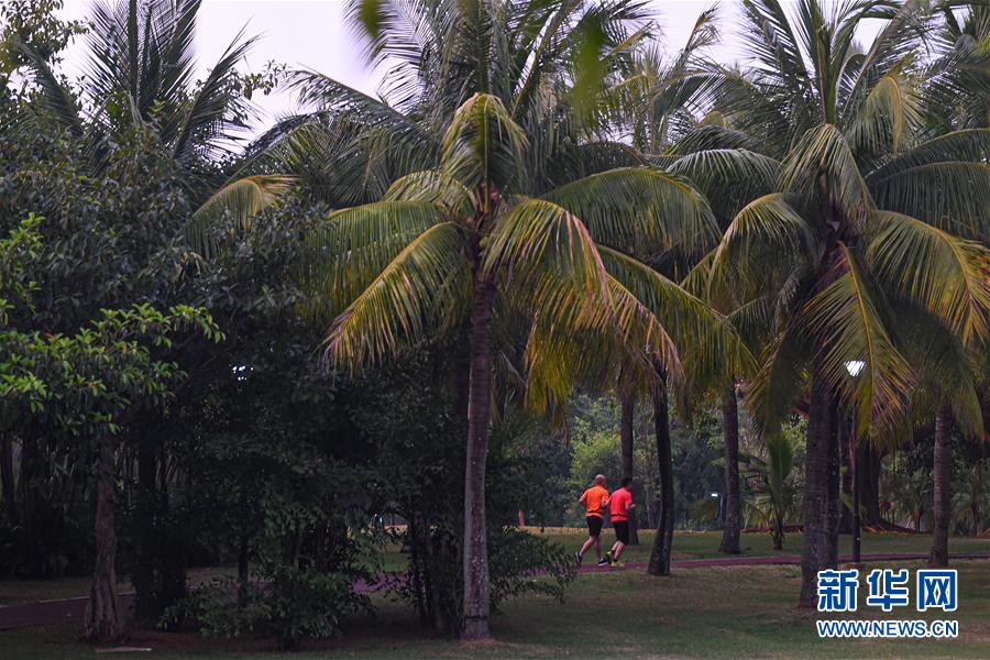 市民在??谌f綠園夜跑(5月28日拍攝)。近年來,夜跑成為越來越多都市人熱衷的健身方式之一。在海南海口,每當(dāng)夜幕降臨,“夜跑族”來到??谌f綠園、世紀(jì)公園等夜跑場所跑步,用一身酣暢淋漓的汗水?dāng)[脫白天工作中的壓力,享受跑步帶來的歡愉。新華社記者 蒲曉旭 攝