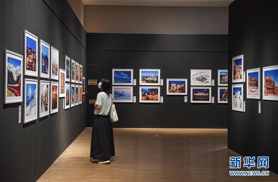 6月13日,觀眾在位于??诘暮D鲜〔┪镳^觀看“地球諧音——世界文化遺產(chǎn)攝影藝術(shù)展”。新華社記者蒲曉旭攝。