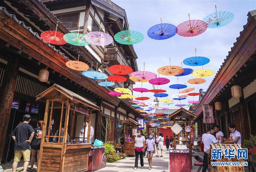 6月13日,市民在長春市世茂蓮花山小鎮(zhèn)寬厚里商街參觀游覽。當(dāng)日是“文化和自然遺產(chǎn)日”。吉林長春首屆蓮花山消夏生活節(jié)在世茂蓮花山小鎮(zhèn)舉行?;顒?dòng)將非遺展示與假日消暑休閑相結(jié)合,讓游人在“古色古香”的油紙傘巷中品傳統(tǒng)文化魅力,享夏日休閑愜意。新華社記者許暢攝。