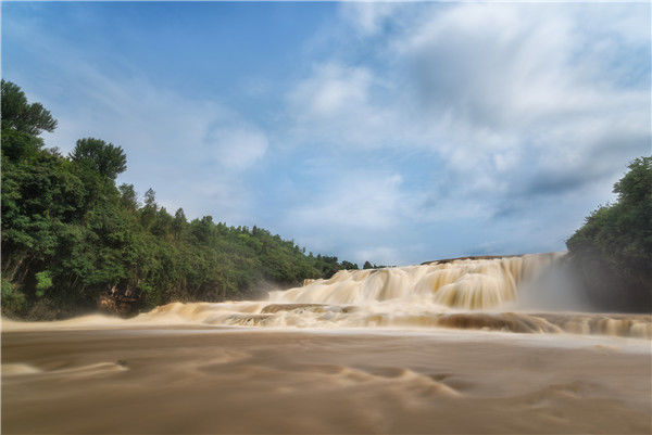 2019年6月8日,貴州安順,黃果樹瀑布進入豐水期。圖為黃果樹大瀑布上游的陡坡塘瀑布。袁博 /視覺中國