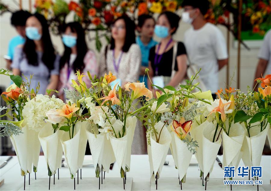 這是開幕式現(xiàn)場展示的大學(xué)生設(shè)計創(chuàng)作的萱草花小花束(6月13日攝)。6月13日,“2020中國(上海)萱草文化節(jié)”在上海應(yīng)用技術(shù)大學(xué)開幕,校園里數(shù)百個品種的萱草花競相綻放,萱草科研推廣、萱草文化交流等多項(xiàng)活動同時舉行。新華社記者 劉穎 攝
