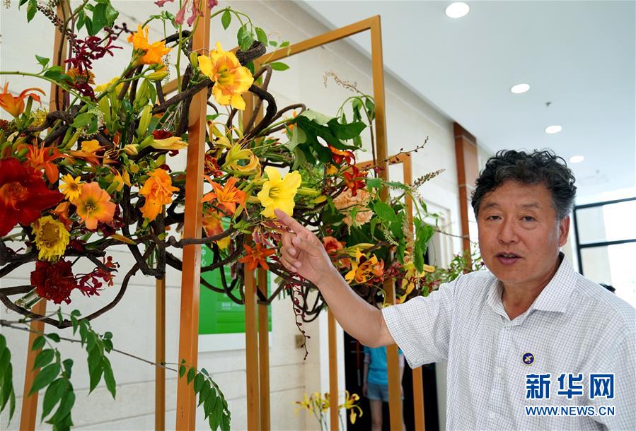 6月13日,第45屆世界技能大賽花藝項(xiàng)目冠軍、上海應(yīng)用技術(shù)大學(xué)學(xué)生陸亦煒在介紹自己主持設(shè)計和創(chuàng)作的花藝作品。當(dāng)日,“2020中國(上海)萱草文化節(jié)”在上海應(yīng)用技術(shù)大學(xué)開幕,校園里數(shù)百個品種的萱草花競相綻放,萱草科研推廣、萱草文化交流等多項(xiàng)活動同時舉行。新華社記者 劉穎 攝
