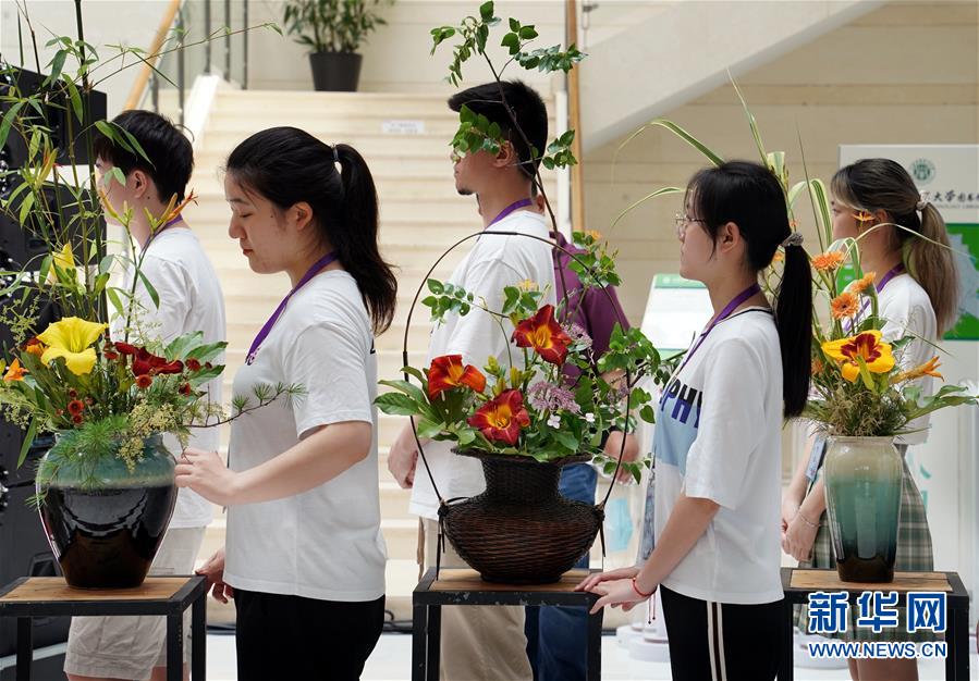 6月13日,上海應(yīng)用技術(shù)大學(xué)的學(xué)生們?cè)O(shè)計(jì)創(chuàng)作的萱草花藝作品即將在開(kāi)幕式現(xiàn)場(chǎng)亮相。當(dāng)日,“2020中國(guó)(上海)萱草文化節(jié)”在上海應(yīng)用技術(shù)大學(xué)開(kāi)幕,校園里數(shù)百個(gè)品種的萱草花競(jìng)相綻放,萱草科研推廣、萱草文化交流等多項(xiàng)活動(dòng)同時(shí)舉行。新華社記者 劉穎 攝