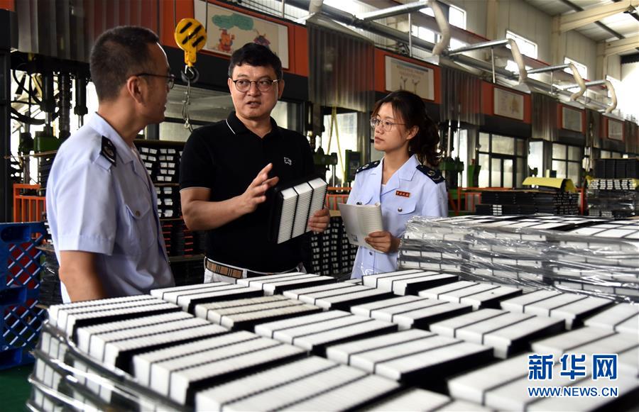 6月15日,稅務工作人員在河北省邢臺市威縣一家汽車配件生產企業(yè)調研稅費政策落實情況。新冠肺炎疫情發(fā)生以來,國家稅務總局威縣稅務局實施“一企一策”精準輔導,組建稅收服務小分隊,主動上門對接納稅企業(yè),解讀疫情期間稅費優(yōu)惠相關政策,確保政策落實“一戶不少、應享盡享”,為企業(yè)提供助力。新華社記者 朱旭東 攝