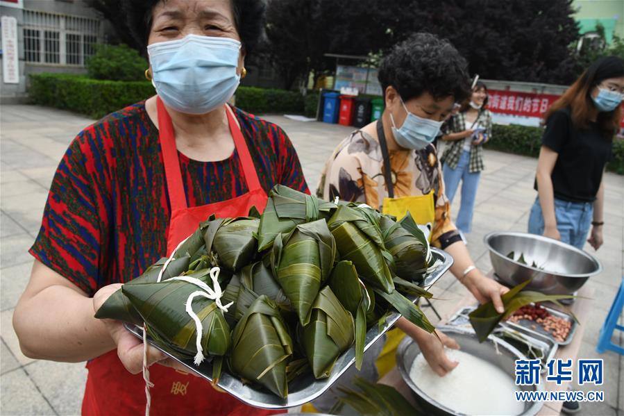 6月17日,水清溝街道居民在社區(qū)廣場(chǎng)上包粽子。當(dāng)日,青島市北區(qū)水清溝街道開展迎端午鄰里愛心傳遞進(jìn)網(wǎng)格活動(dòng),居民通過包粽子、吃粽子、網(wǎng)上端午傳統(tǒng)文化課等形式傳遞鄰里愛心,傳承民俗文化。新華社記者 李紫恒 攝