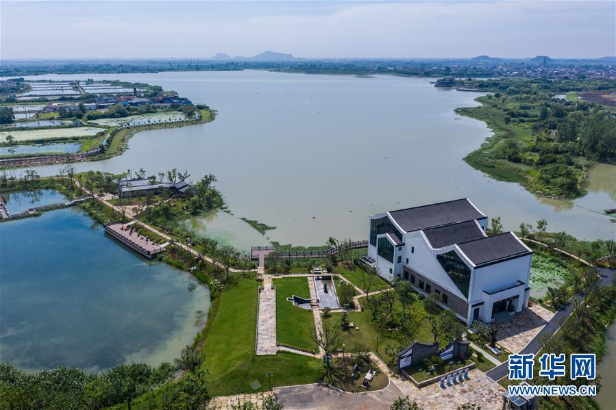 空中俯瞰建成開放的德清水情館(6月17日攝,無(wú)人機(jī)照片)。
