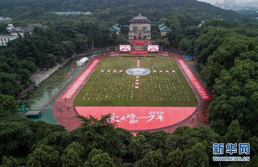 6月20日拍攝的武漢大學(xué)2020年畢業(yè)典禮現(xiàn)場(無人機照片)。