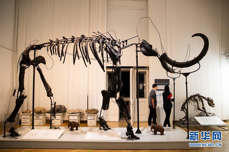 6月20日,在斯洛文尼亞首都盧布爾雅那,游客在斯洛文尼亞自然歷史博物館內(nèi)經(jīng)過(guò)猛犸象骨骼標(biāo)本。新華社記者彭立軍攝
