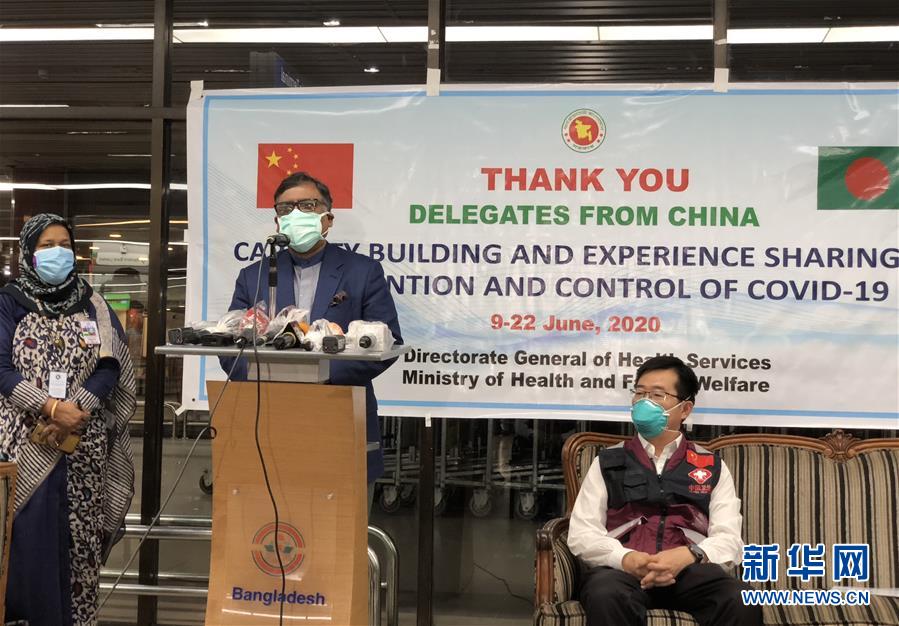 6月22日,孟加拉國衛(wèi)生和家庭福利部部長馬利克(中)在首都達(dá)卡舉行的送行儀式上致辭感謝中方專家組。中國赴孟加拉國抗疫醫(yī)療專家組圓滿完成任務(wù),于22日乘機(jī)返回祖國。孟加拉國衛(wèi)生和家庭福利部部長馬利克對疫情發(fā)生以來中國給予孟加拉國的大力支持表示感謝。新華社記者劉春濤攝