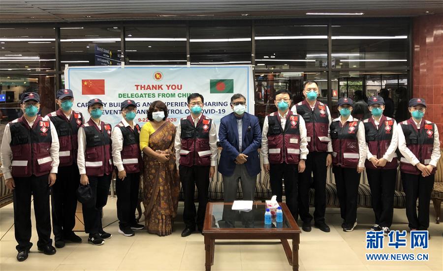 6月22日,孟加拉國(guó)衛(wèi)生和家庭福利部部長(zhǎng)馬利克(右六)等在首都達(dá)卡舉行的送行儀式上與中方專家組合影留念。中國(guó)赴孟加拉國(guó)抗疫醫(yī)療專家組圓滿完成任務(wù),于22日乘機(jī)返回祖國(guó)。孟加拉國(guó)衛(wèi)生和家庭福利部部長(zhǎng)馬利克對(duì)疫情發(fā)生以來(lái)中國(guó)給予孟加拉國(guó)的大力支持表示感謝。新華社記者劉春濤攝