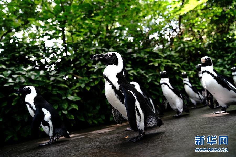 6月26日,上海動物園的企鵝在園內漫步。新華社記者 張建松 攝