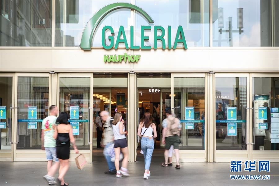 6月27日,在德國首都柏林,人們走進一家商場。新華社記者單宇琦攝