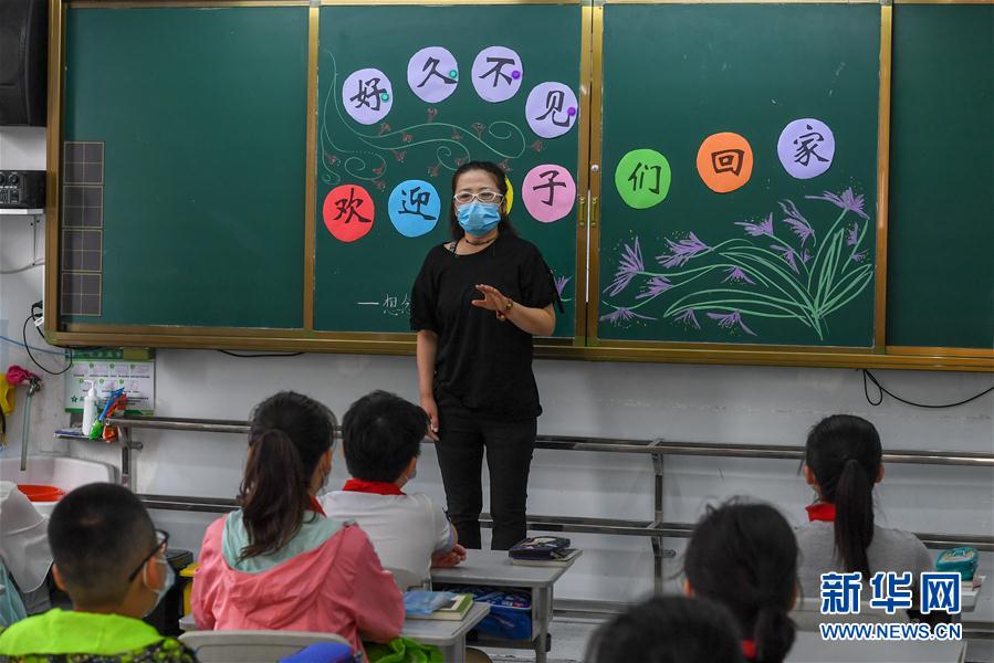 6月29日,在吉林市第一實驗小學,教師關海英為學生上開學第一課。新華社記者張楠攝