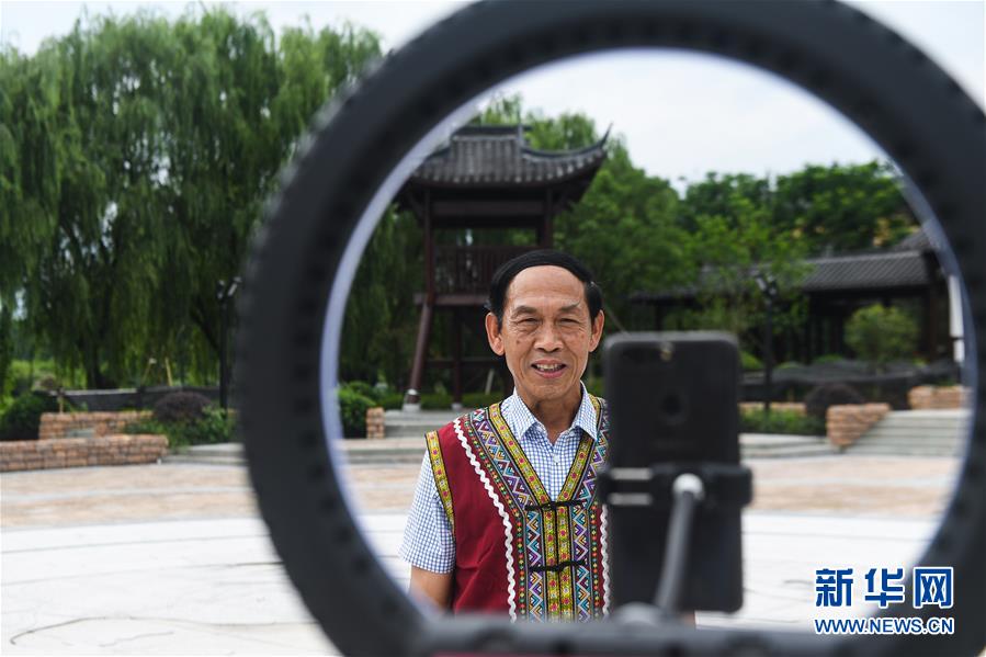 6月29日,70歲的畬族老黨員藍(lán)練根在新登鎮(zhèn)雙江村的畬族文化廣場(chǎng)直播,向網(wǎng)友介紹“畬族村寨”雙江村的風(fēng)土人情,推介家鄉(xiāng)的文旅產(chǎn)業(yè)。近日,浙江省杭州市富陽(yáng)區(qū)新登鎮(zhèn)來自不同領(lǐng)域、有著不同身份的基層黨員們紛紛化身網(wǎng)絡(luò)“主播”,借助抖音、朋友圈等網(wǎng)絡(luò)載體,傾情推介家鄉(xiāng)的山鄉(xiāng)風(fēng)貌、山鄉(xiāng)味道、山鄉(xiāng)民俗、山鄉(xiāng)風(fēng)情。新華社記者徐昱攝