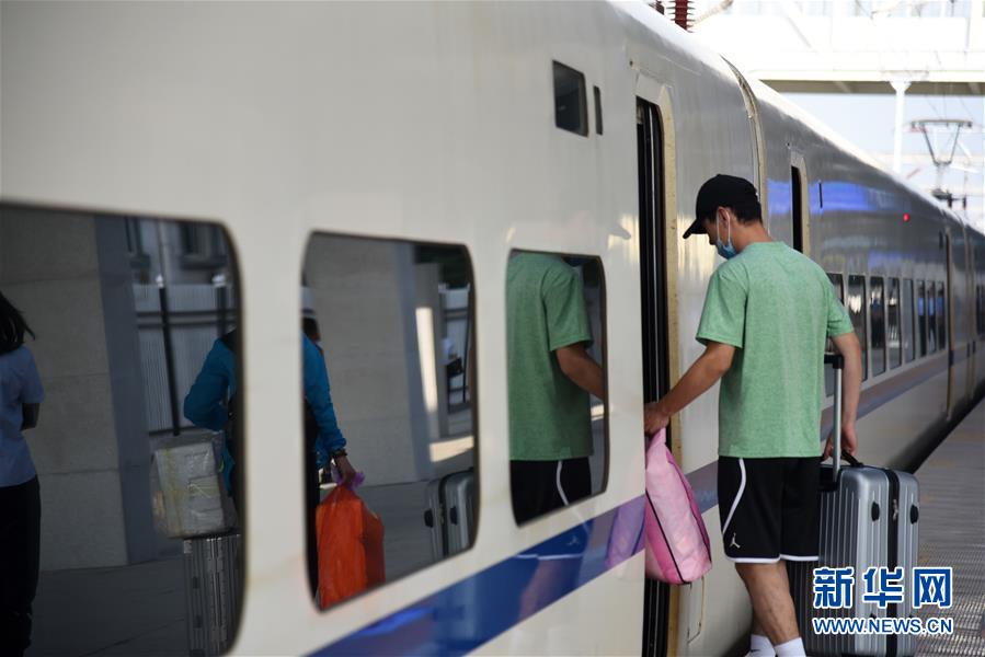 7月1日,旅客在山東章丘站上車(chē)。當(dāng)日,2020年全國(guó)鐵路暑運(yùn)拉開(kāi)帷幕。新華社記者王凱攝