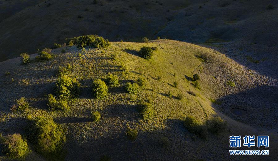 6月30日,朝霞照耀下的神田草甸(無(wú)人機(jī)照片)。位于陜西省安康市嵐皋縣與重慶市城口縣交界處大巴山神田主脊北坡的神田草甸,面積超過1.1萬(wàn)畝。夏日的朝霞中,起伏的草甸仿佛一塊寬大無(wú)邊的綠色地毯,鑲嵌在大巴山上,如詩(shī)如畫。新華社發(fā)(邱仕君攝)
