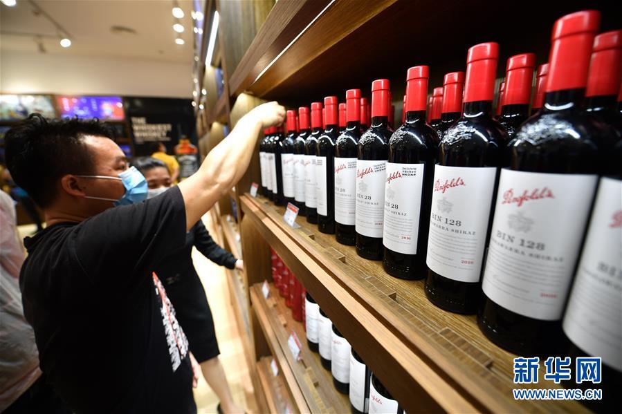7月1日,顧客在??谌赵聫V場免稅店選購酒類商品。當(dāng)日,海南開始實施調(diào)整后的離島免稅購物政策。海南離島旅客每年每人免稅購物額度提高至10萬元,電子消費產(chǎn)品等7類新增商品開售。新華社記者郭程攝