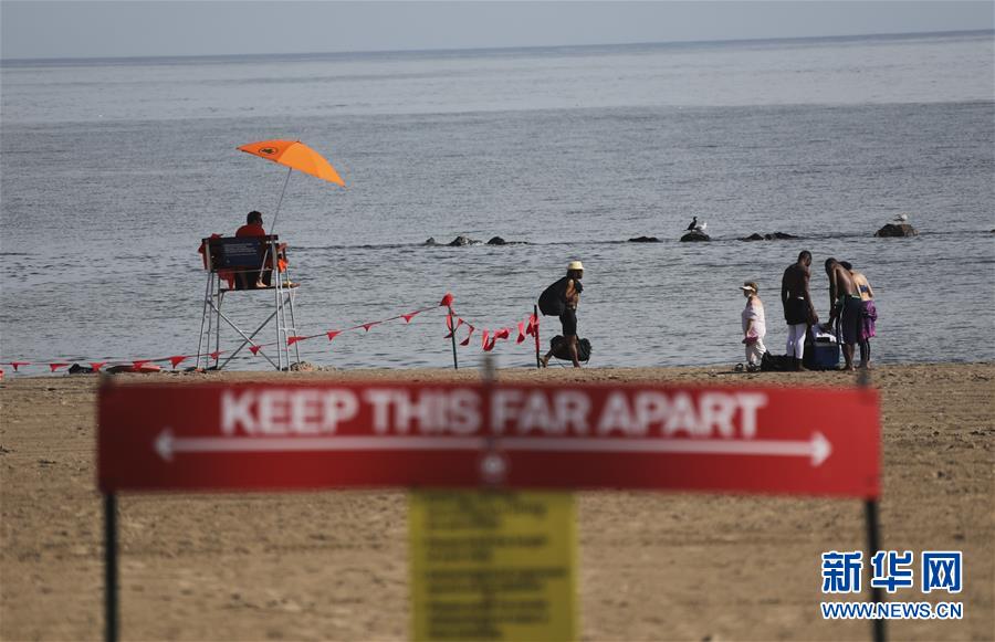 7月1日,救生員在美國紐約科尼島的一處海灘查看海面情況。當(dāng)日,美國紐約市屬八處海灘正式重新準(zhǔn)許民眾游泳,救生員也同時(shí)上崗。新華社記者王迎攝
