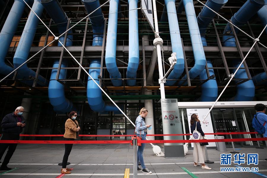 7月1日,參觀者在法國巴黎蓬皮杜藝術(shù)中心外排隊(duì)等待。因新冠疫情關(guān)閉的法國巴黎蓬皮杜藝術(shù)中心于7月1日重新開門迎客。目前,中心只開放6層的臨時(shí)展區(qū)和4、5層的現(xiàn)代藝術(shù)常設(shè)展區(qū)。參觀者需提前網(wǎng)上預(yù)約參觀時(shí)段,11歲以上參觀者須佩戴口罩,參觀過程中保持安全距離。新華社記者高靜攝