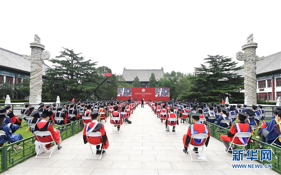 7月2日拍攝的北京大學(xué)2020年畢業(yè)典禮辦公樓西側(cè)廣場(chǎng)會(huì)場(chǎng)。當(dāng)日,北京大學(xué)舉行2020年畢業(yè)典禮。由于疫情防控需要,今年的典禮在北京大學(xué)辦公樓西側(cè)廣場(chǎng)、靜園草坪、未名湖等九個(gè)會(huì)場(chǎng)舉行,并面向全球進(jìn)行中英文雙語(yǔ)直播,僅部分在校畢業(yè)生現(xiàn)場(chǎng)參加,更多畢業(yè)生通過(guò)線(xiàn)上直播參與畢業(yè)典禮。新華社記者任超攝