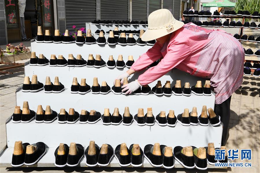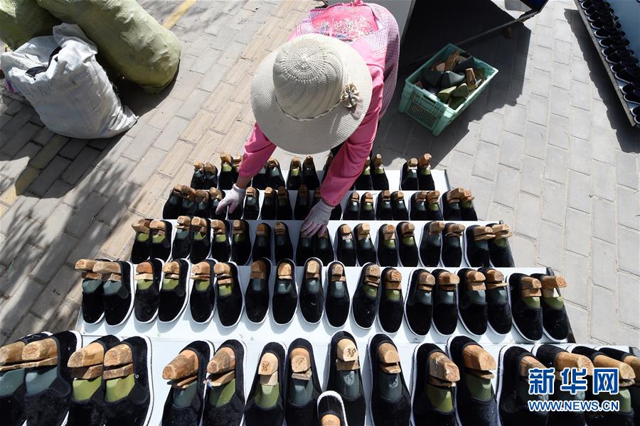 7月2日,臨夏縣百利布鞋加工農(nóng)民專業(yè)合作社員工在擺放布鞋。甘肅省臨夏回族自治州臨夏縣將布鞋加工定為重點(diǎn)扶持發(fā)展的產(chǎn)業(yè),采用“政府+公司+貧困戶”的產(chǎn)業(yè)扶貧模式,由政府主導(dǎo)、企業(yè)出資,在貧困村建設(shè)“扶貧車間”,吸納貧困群眾從事布鞋加工產(chǎn)業(yè)增加收入。截至2019年底,當(dāng)?shù)夭夹庸て髽I(yè)和加工戶遍及近百個(gè)行政村,從業(yè)人員達(dá)到4000多人,累計(jì)生產(chǎn)布鞋600多萬雙,實(shí)現(xiàn)銷售收入2.32億元。新華社記者范培珅攝