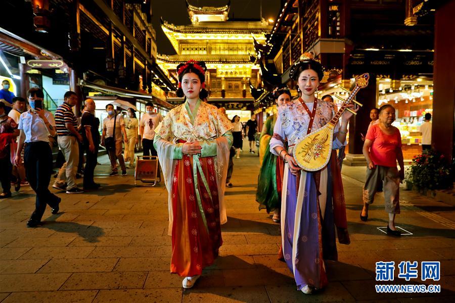 7月3日,上海豫園內(nèi)舉行古裝巡游活動。從7月第一個周末起,上海豫園原有的“豫園六點半”集市全面升級,煥彩燈光、演藝活動和花車集市全線更新,讓市民和游客在觀燈、觀人、觀演的沉浸式體驗中,享受夏日特色的“食玩”樂趣。新華社記者 劉穎 攝