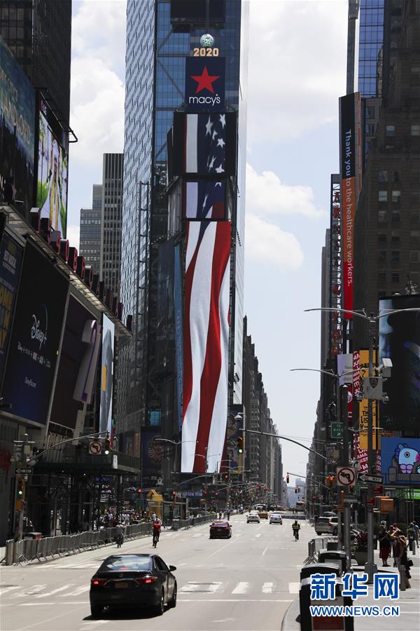 7月4日,美國紐約時報廣場上的行人和車輛稀少。當(dāng)日是美國獨立日,美國多地疫情仍面臨嚴(yán)峻形勢。美國約翰斯·霍普金斯大學(xué)實時統(tǒng)計數(shù)據(jù)顯示,美國累計新冠確診病例4日已超過280萬例。新華社記者王迎攝
