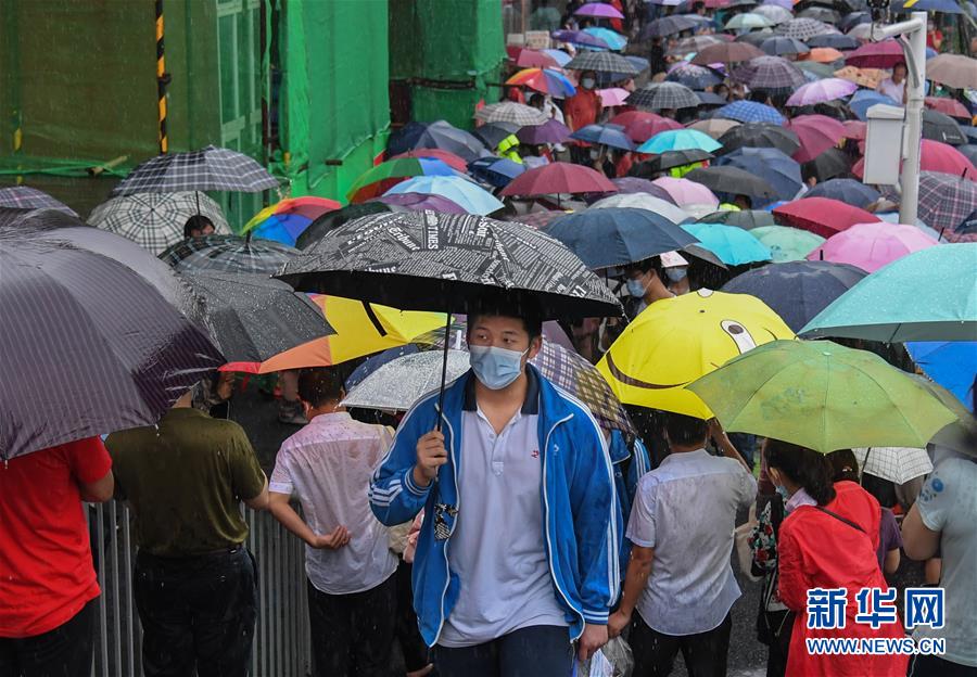 7月7日,在湖北省武漢市東湖中學(xué)考點,考生結(jié)束首場科目考試后走出考場。當日,2020年高考拉開帷幕。新華社記者程敏攝