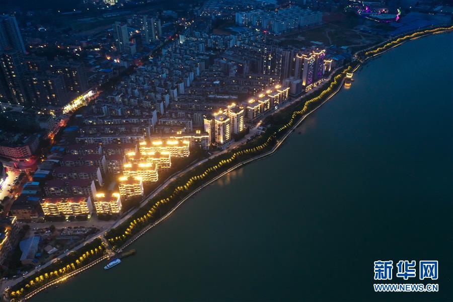 這是融安縣城夜色(7月7日攝,無(wú)人機(jī)照片)。夏夜的廣西融安縣城燈火璀璨,景色迷人。新華社記者張愛(ài)林?jǐn)z