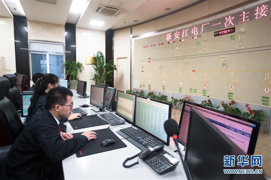7月7日,新安江電廠工作人員在壩體內(nèi)部中央控制室工作。受持續(xù)降水影響,浙江新安江水庫(kù)水位持續(xù)快速上升。繼當(dāng)日10時(shí)開(kāi)啟3孔、12時(shí)開(kāi)啟5孔泄洪后,新安江水庫(kù)于16時(shí)增加到7孔泄洪。新安江水庫(kù)是華東地區(qū)最大的水庫(kù),在錢(qián)塘江流域的防洪度汛中起到關(guān)鍵作用。新華社記者翁忻旸攝