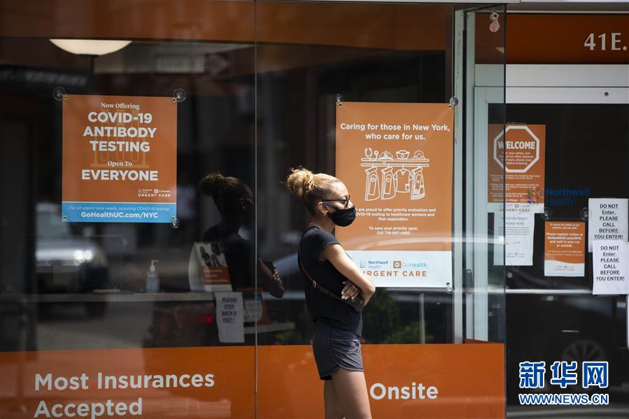 7月8日,一名女子在美國紐約一家診所外等候進行新冠病毒檢測。美國約翰斯·霍普金斯大學8日發(fā)布的新冠疫情最新統(tǒng)計數(shù)據(jù)顯示,美國累計確診病例超過300萬例。數(shù)據(jù)顯示,截至美國東部時間8日11時34分(北京時間23時34分),美國累計確診病例3016515例,累計死亡病例131594例。新華社記者王迎攝